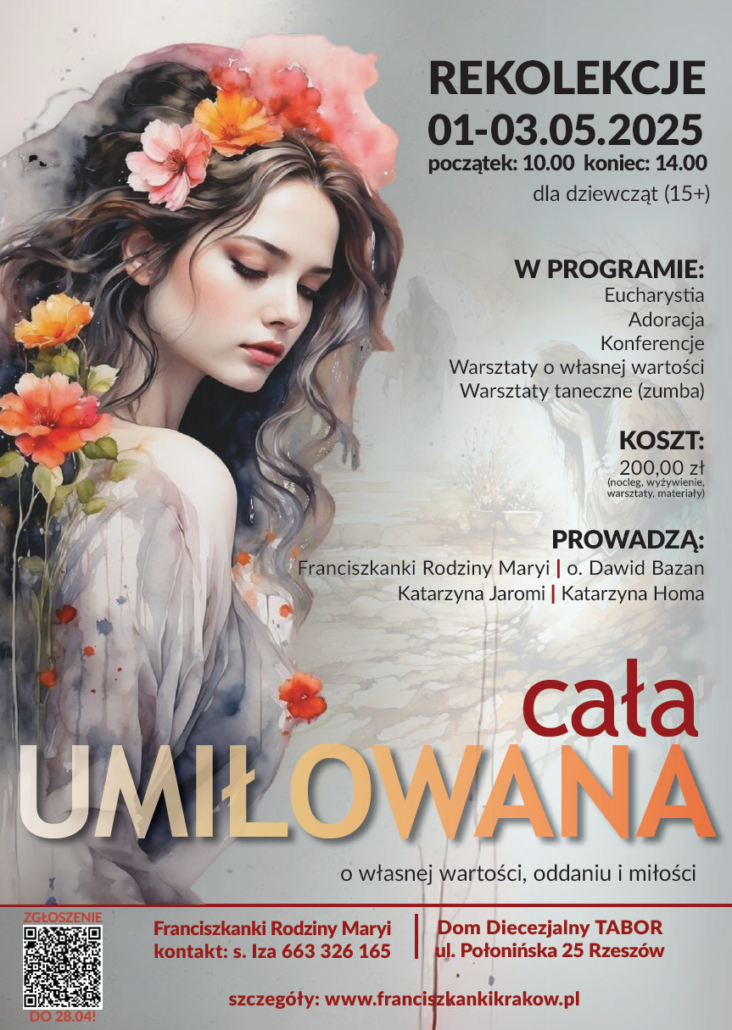 Zabierz ze sobą Pismo Święte, notatnik, wygodny strój, otwarte serce i ciekawość siebie. Czekamy właśnie na Ciebie. Bo jesteś „Cała umiłowana”.